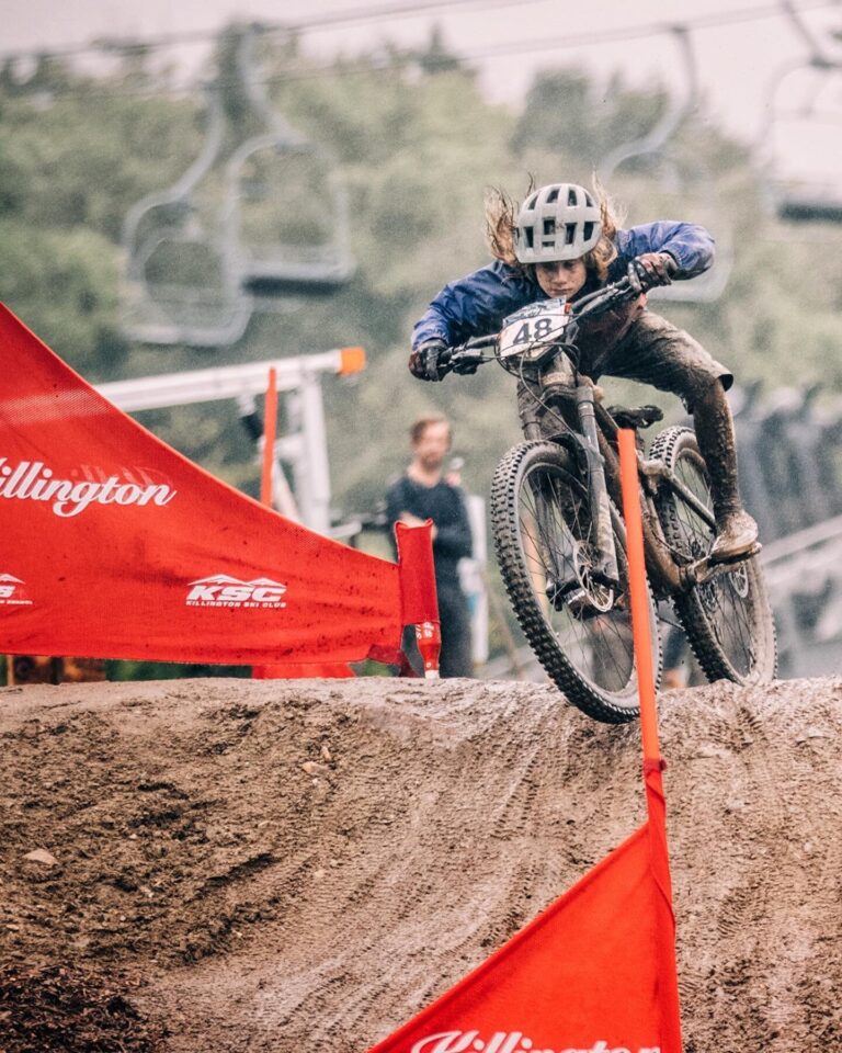 The event spans multiple disciplines across Killington’s terrain. The downhill race launches from Ramshead Peak, incorporating sections of the notorious “Goat Skull” trail plus custom-built features designed specifically for the competition. The dual slalom track mixes grassy turns, jumps, and berms in a spectator-friendly format that works well with enduro bikes.